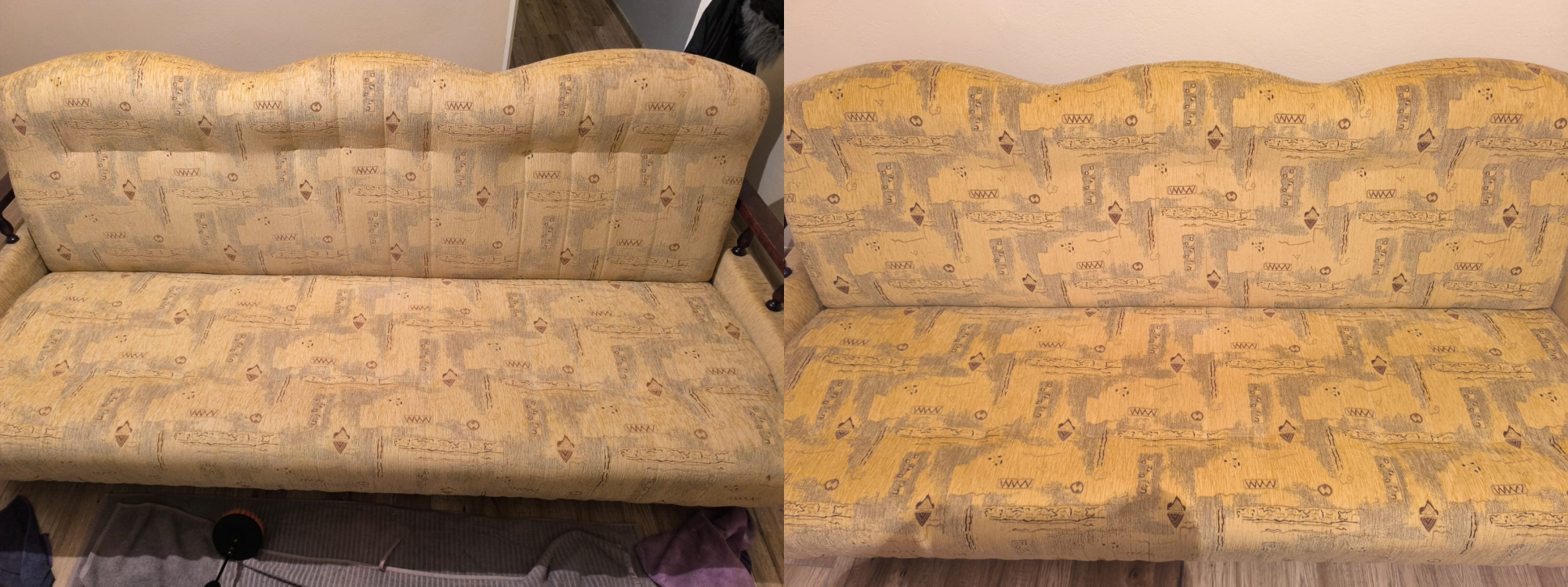 Klientka zgłosiła się do nas z prośbą o odświeżenie wersalki, która była intensywnie użytkowana przez kilka lat. Na obiciu widoczne były zabrudzenia od codziennego użytkowania, a także plamy po napojach. Do realizacji zadania użyliśmy profesjonalnego sprzętu Karcher oraz bezpiecznych dla ludzi i zwierząt środków czyszczących.