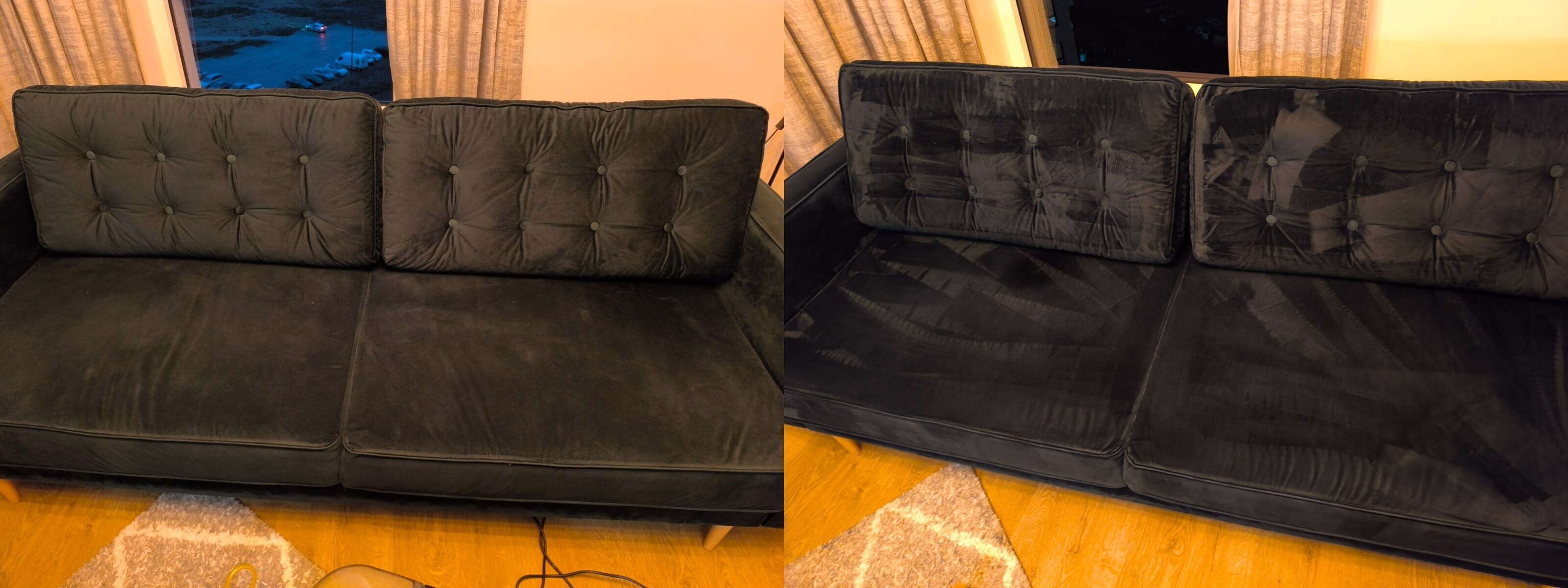 Do pracy podeszliśmy jak zawsze z pełnym profesjonalizmem, używając sprawdzonych środków czyszczących i ekstrakcyjnej metody prania. Meble odzyskały świeżość, a wszelkie osady, kurz i niewielkie plamy zniknęły, pozostawiając tapicerkę czystą i pachnącą.