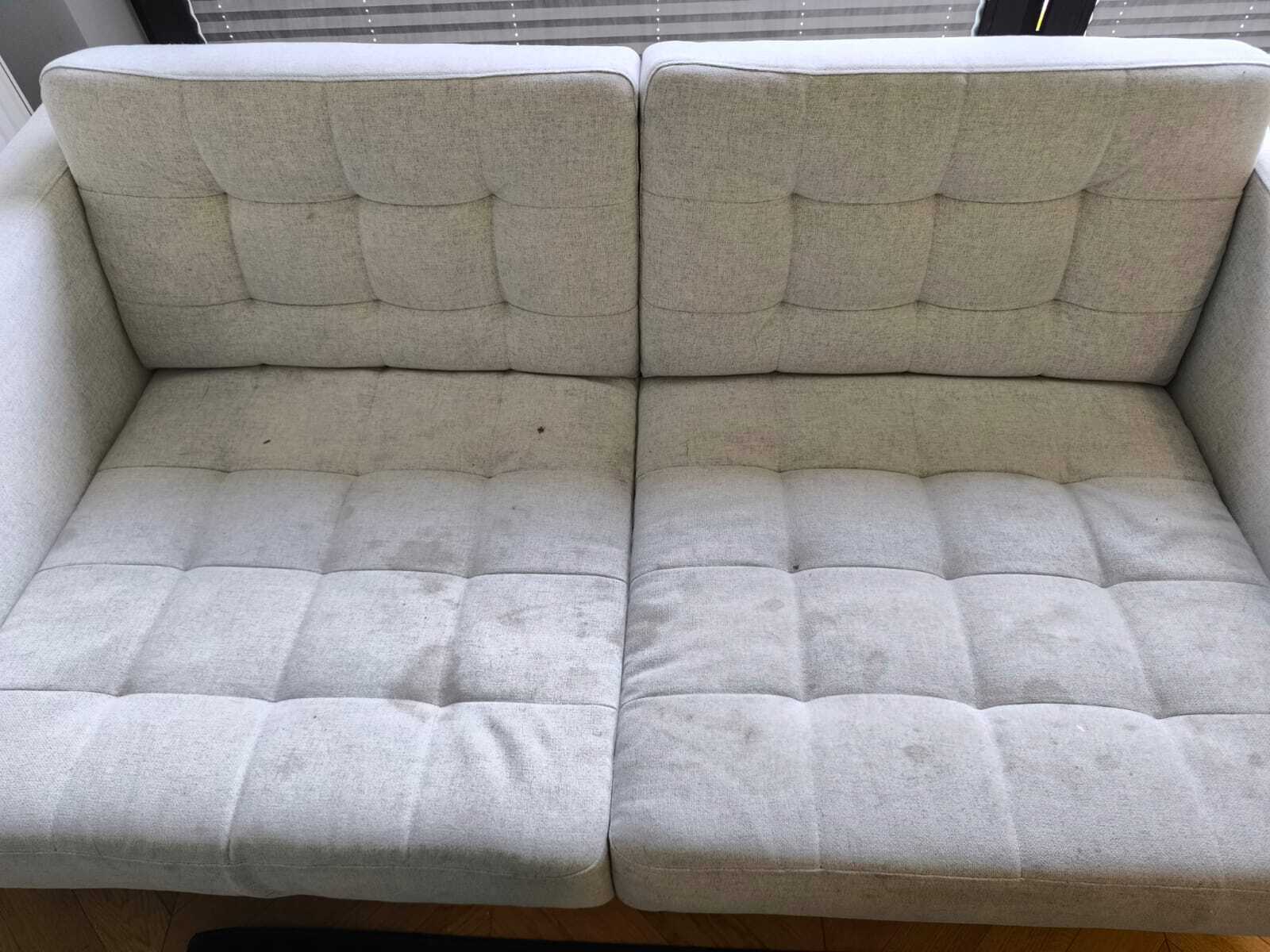 Na miejscu zobaczyliśmy kanapę, która z pewnością „wiele widziała”. Wśród plam dominowały ślady po sokach, czekoladzie, długopisach, a także kolorowe kreski po pisakach i markerach. Tkanina obiciowa była dość jasna, więc każdy nawet najmniejszy ślad był doskonale widoczny.