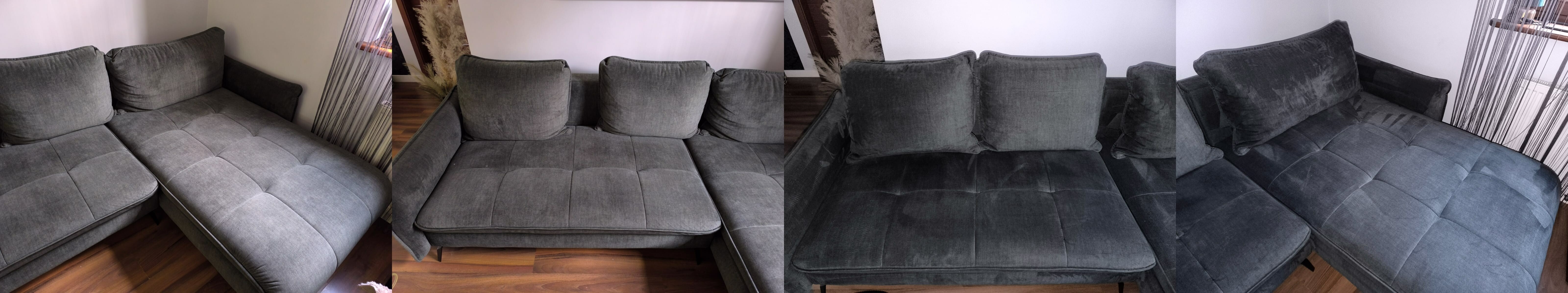 Pranie tapicerki narożnika:Do czyszczenia zastosowaliśmy środki bezpieczne dla zwierząt i ludzi, które nie tylko skutecznie usuwają zabrudzenia, ale także neutralizują nieprzyjemne zapachy. Profesjonalny sprzęt pozwolił nam dotrzeć do głębszych warstw materiału, gdzie mogły znajdować się ukryte plamy.